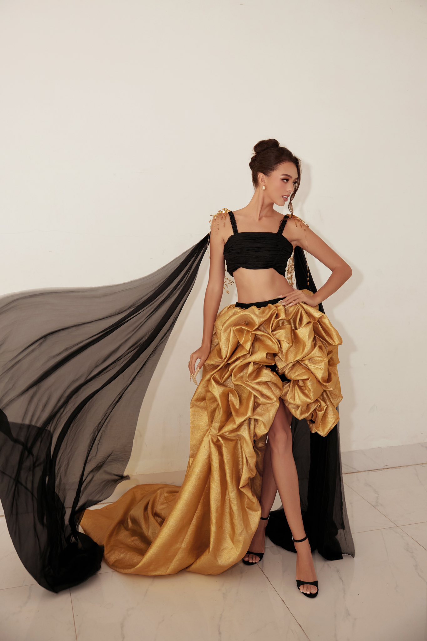Trong bộ trang phục thiết kế hiện đại, Dianka khéo léo khoe bờ vai trần quyến rũ và làn da khỏe khoắn. Góc nghiêng thần thánh cùng đôi mắt sâu cuốn hút giúp cô nàng tỏa sáng rực rỡ dưới ánh đèn sân khấu.