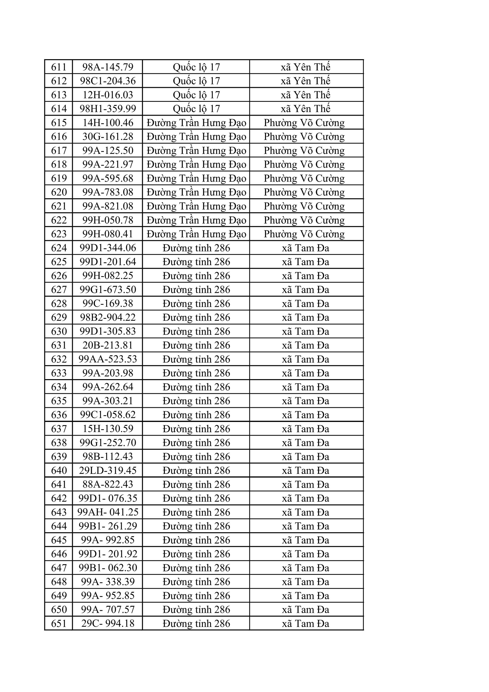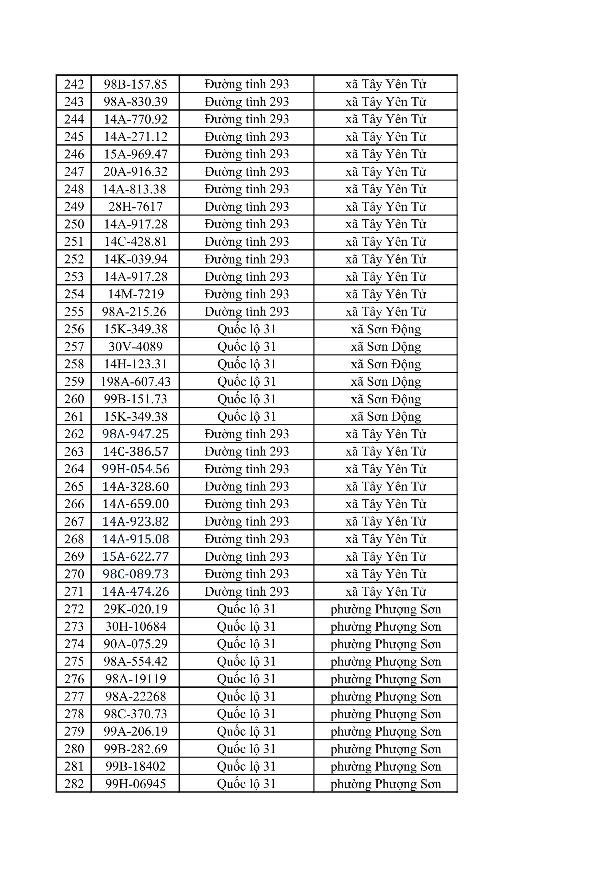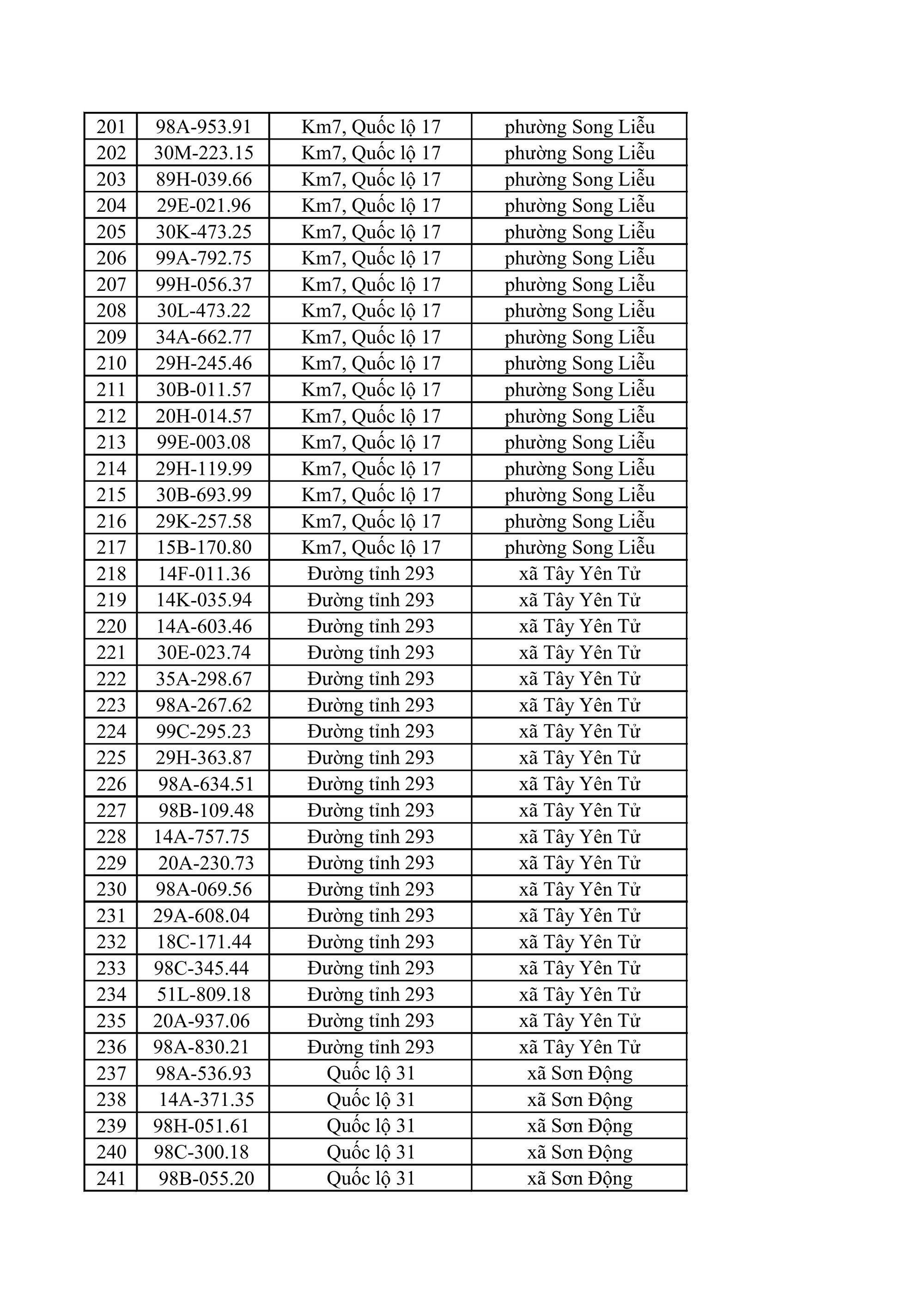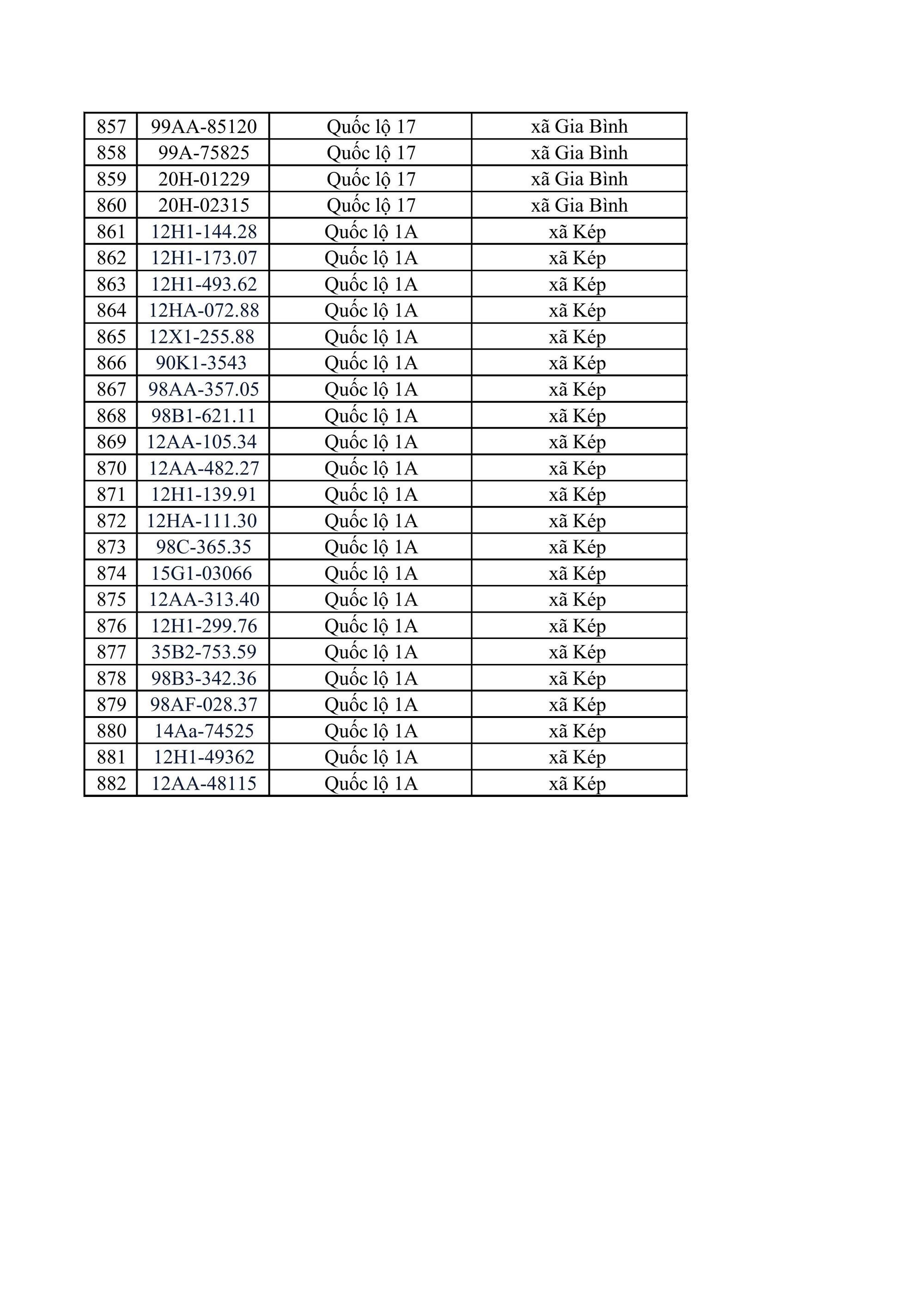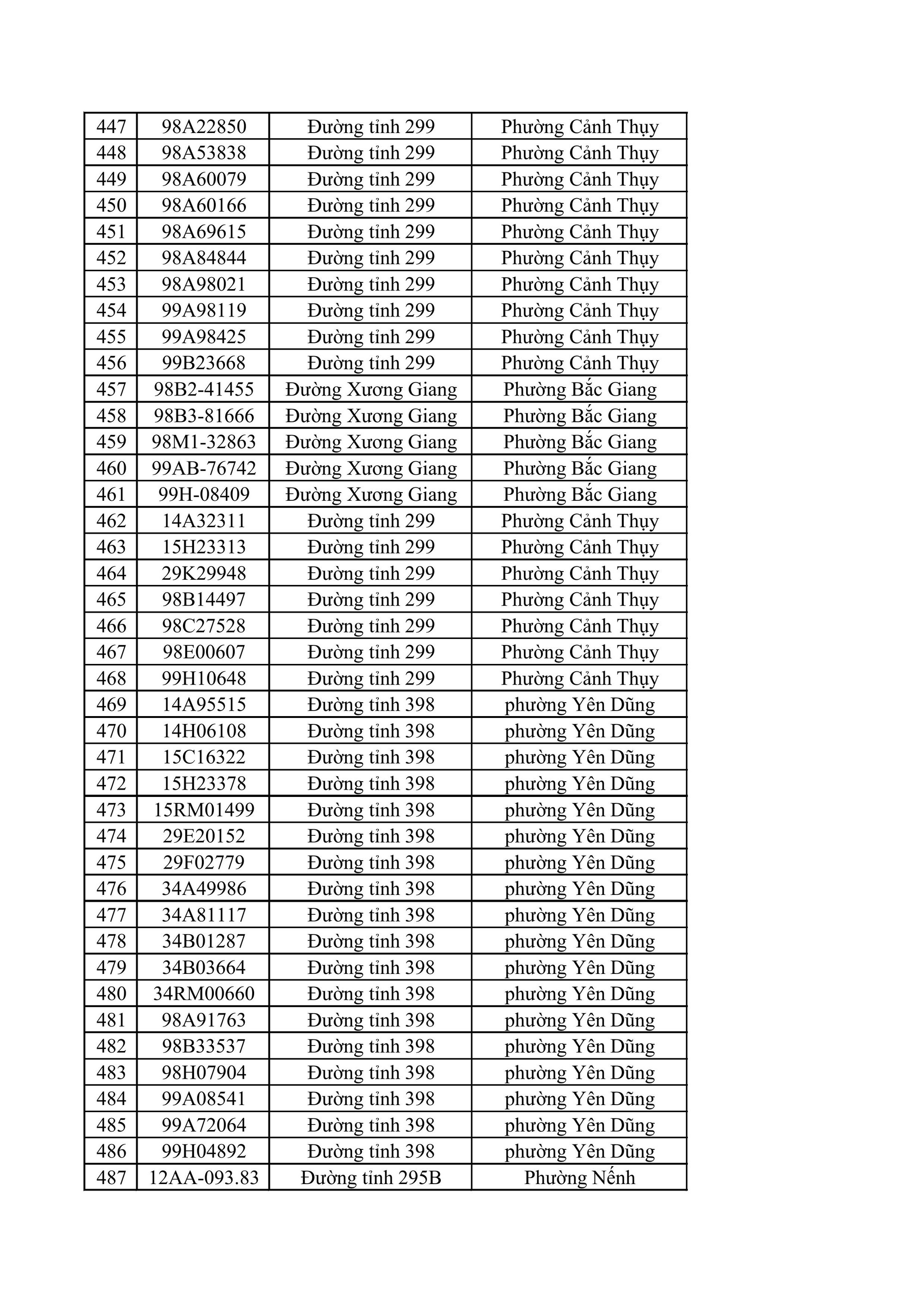 Phòng CSGT Công an tỉnh Bắc Ninh đề nghị chủ phương tiện có tên trong danh sách vi phạm chủ động liên hệ với cơ quan chức năng để được hướng dẫn, giải quyết theo quy định. Danh sách chi tiết các phương tiện vi phạm được công bố tại đường link do cơ quan chức năng cung cấp:
