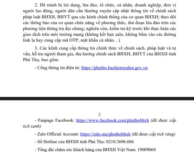 - Cổng thông tin điện tử: https://phutho.baohiemxahoi.gov.vn