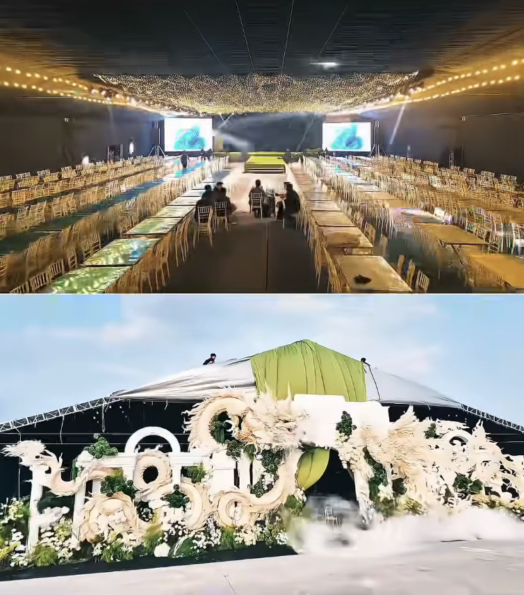 Rạp cưới của cặp đôi Đức Huy và Mù Tạt với quy mô 1000m2 đã hoàn thành với phần trang trí vô cùng ấn tượng, sẵn sàng đón khách dự lễ cưới vào 17h30 chiều nay 14/3.